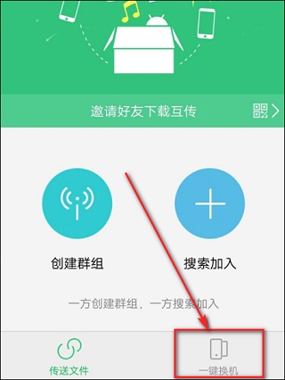 2、进入软件主界面后,两部手机分别点击“一键换机”。