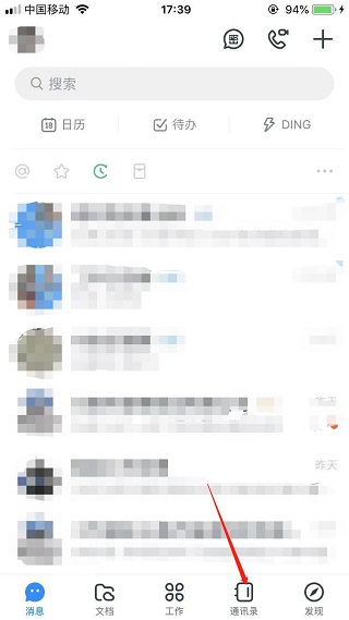 1、手机打开钉钉客户端,进入主页,点击通讯录。如图: