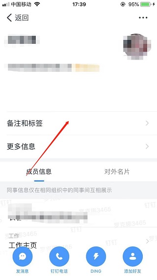 3、点击之后即可在好友的资料卡上找到“备注”并点击进行修改即可。如图: