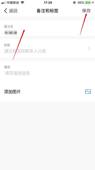 5、然后在备注名出输入你想要备注的名称点击保存就可以了。如图: