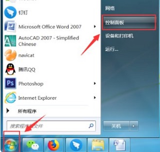 2、在电脑桌面左下角单击“开始”并选择“控制面板”。
