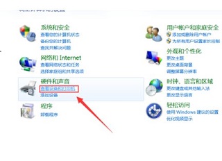 3、选择“查看设备和打印机”。