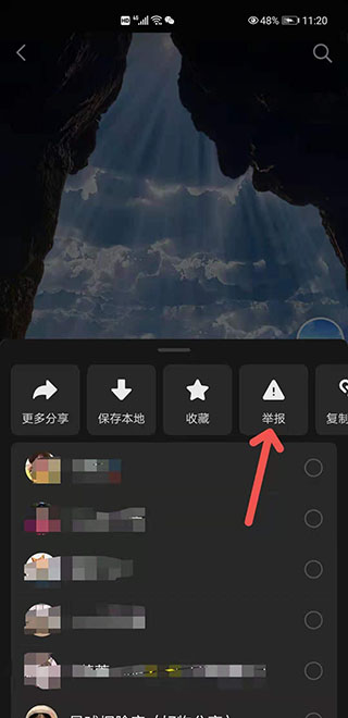 2、在弹窗的菜单选项中,点击“举报“选项。如图: