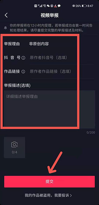4、将举报信息填写完整后,选择提交即可完举报。如图: