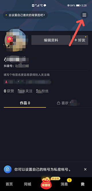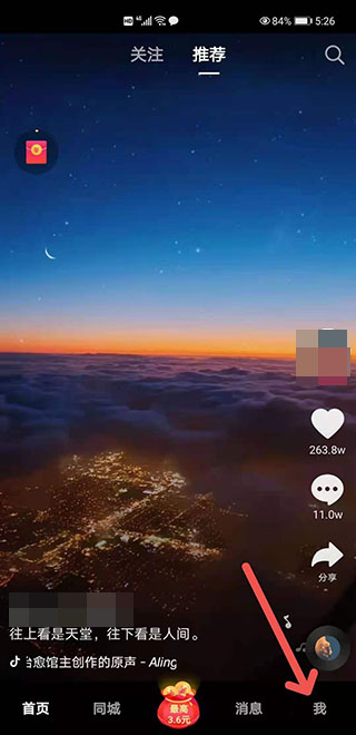 1、进入抖音极速版首页点击右下角“我”菜单进入,如图:
