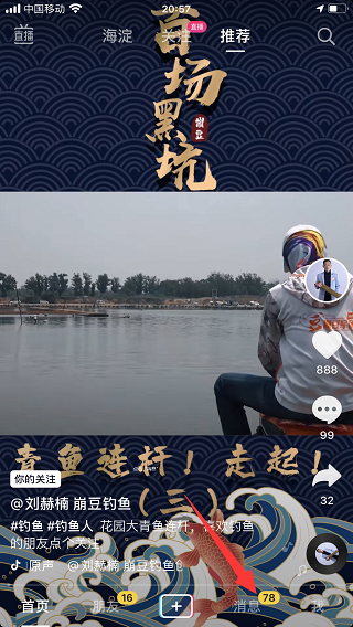 1、首先,在抖音中,点击底部菜单中的“消息”,其位置在右侧第二个菜单中。