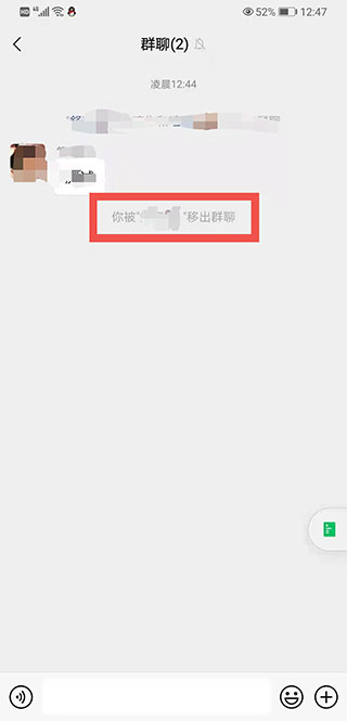 微信被移出群后只有群主和被移出的人有提示,群内其他人是看不到的,微信被移出群后会出现“您已被移除群聊”等提示语。移除群聊后将无法查询或看到群聊中的成员。