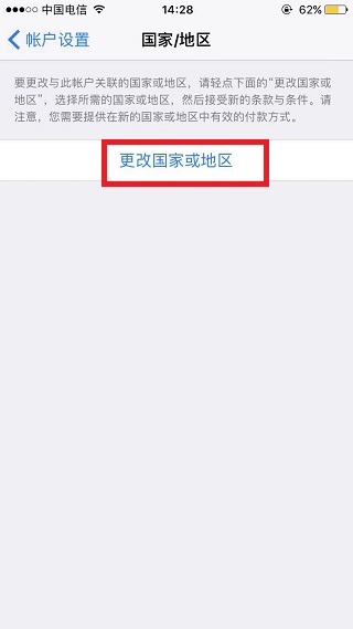 5、点击国家/地区页面的更改国家或地区。
