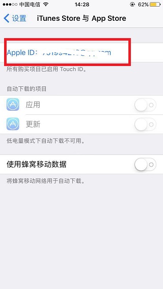 2、在iTunes Store与App Store中,点击最上方的Apple ID。