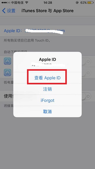 3、在Apple ID选项界面中,点击查看Apple ID。