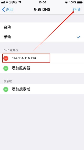 7、接着输入新的DNS(114.114.114.114)并点击存储就可以了。