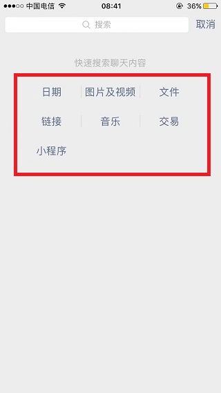 3、这时就到了搜索聊天记录界面了,可以选择日期、图片及视频、文件等对聊天记录进行查询。