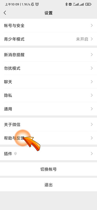 3、进入设置页面后,点击“帮助与反馈”选项。