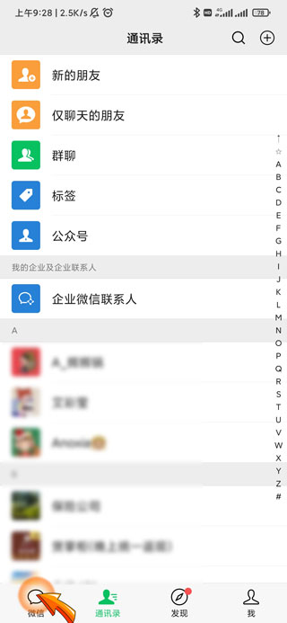 1、微信运动停用首先需要打开微信APP,点击页面左下角“微信”图标。