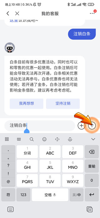 6、最后点击客服回信中的“坚持注销”选项即可。