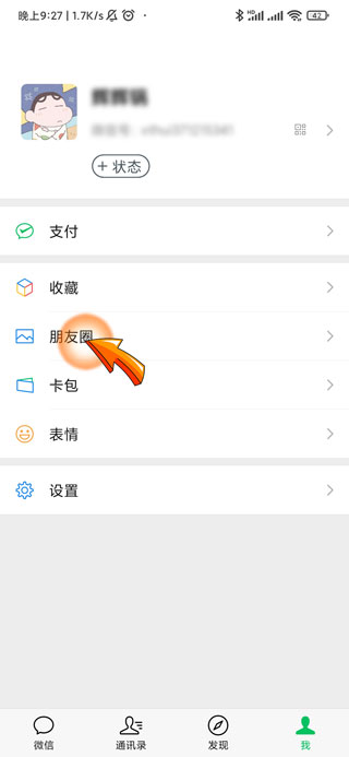 2、然后点击我的页面中的“朋友圈”选项。