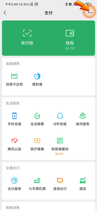 3、进入支付页面后,点击右上角的“三点”符号。
