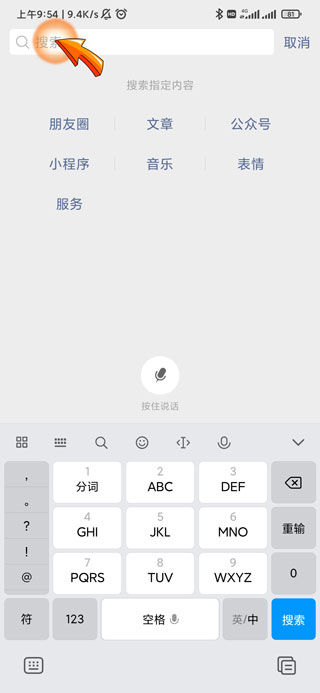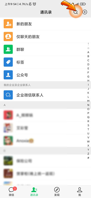 1、电子健康证领取首先需要打开微信APP,点击页面右上角的“放大镜”图标。