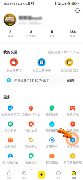 闲鱼玩家需要在闲鱼认证招商中进行认证,首先需要打开闲鱼APP,点击右下角的“我的”图标,进入我的页面后,点击更多中的“认证招商”图标,最后点击闲鱼玩家认证右侧的“申请认证”选项即可。