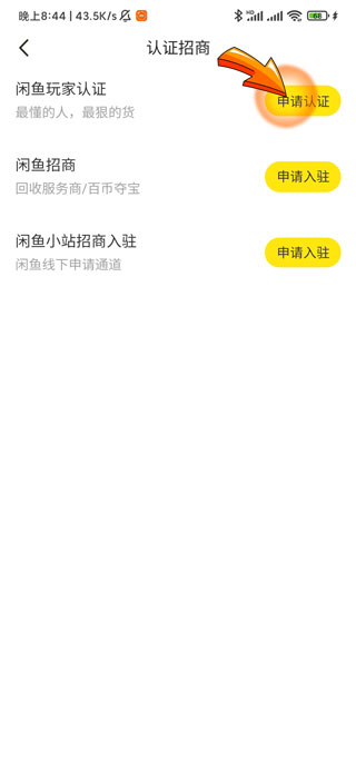 3、最后点击闲鱼玩家认证右侧的“申请认证”选项即可进行申请。