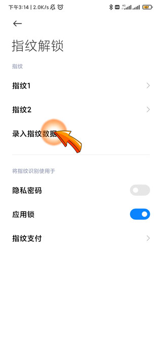 4、最后点击“录入指纹数据”选项即可重新录入指纹。