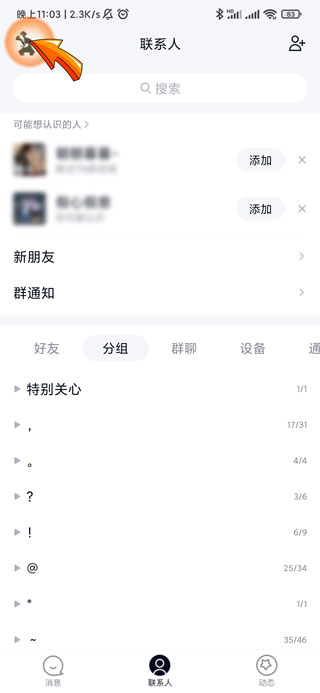 1、qq设置添加我的方式首先需要打开QQAPP,点击右上角的“人像”图标。