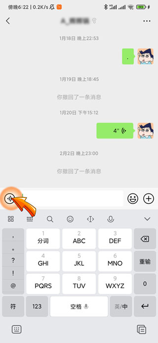 3、进入聊天界面后,点击输入法左上角的“语音”图标。