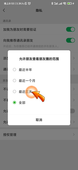 5、最后点击弹出窗口中的“最近三天”选项即可。