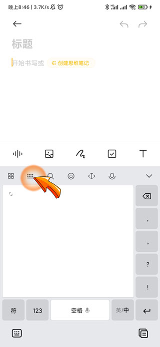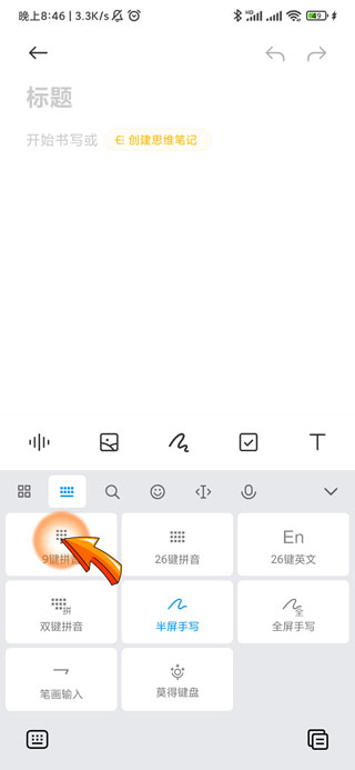 手机不显示打字键盘可能是设置为了手写页面,手机设置拼音打字需要点击页面“可输入文字”处,弹出输入法页面后点击左上角第二个“图标”,然后点击其中的“9键拼音”选项,此时拼音打字页面即可出现。