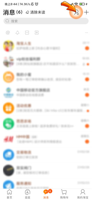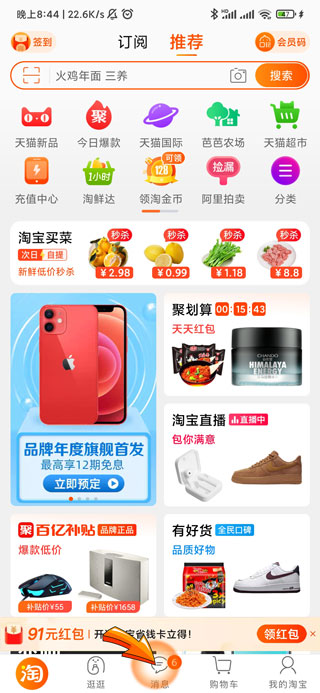 1、淘宝删除好友首先需要打开淘宝APP,点击首页中下方的“消息”图标。