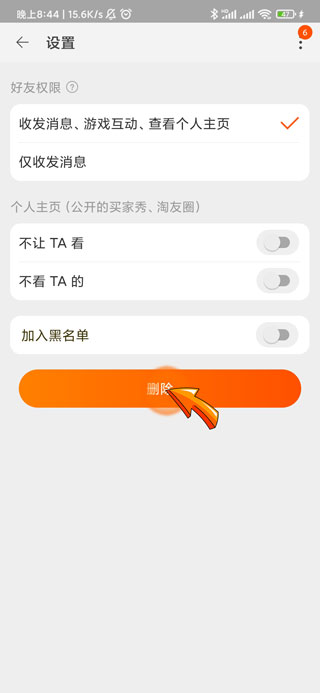 淘宝删除好友是同步的,对方删除后自己的列表中也会将对方删除,淘宝删除好友需要打开淘宝APP,点击页面下方的“消息”图标,然后点击“人像”图标,之后点击对方的头像,再点击右上角的“三点”符号,最后点击“删除”选项即可。