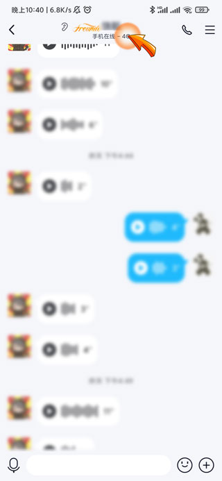 3、进入聊天页面后,对方名称下方“手机在线-4g”即为在线状态。