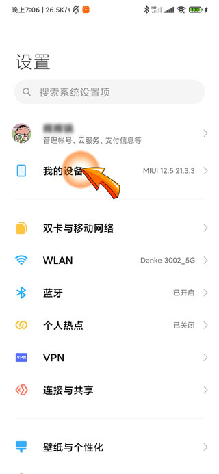红米打开otG模式需要进入开发者模式,首先点击桌面上的“设置”图标,然后点击设置页面中的“我的设备”选项,之后下滑页面点击“全部参数”选项,最后连续点击“MIUI版本”选项即可打开。