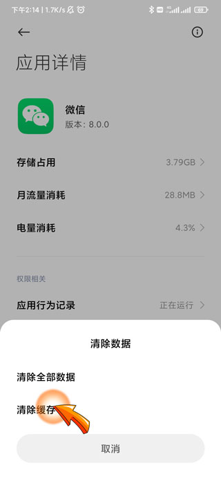 清除微信聊天记录和缓存首先打开桌面上的“手机管家”图标,然后点击“应用管理”图标,在应用管理页面中找到并点击“微信”选项,再点击页面右下角的“清除数据”选项,最后点击页面底部的“清除缓存”选项即可。