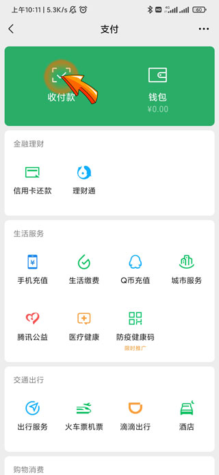 3、进入支付页面后点击左上角的“收付款”选项即可修改支付方式。