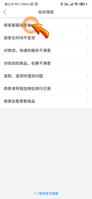 5、最后选择相关投诉原因,例如点击“商家客服态度差”选项即可进行投诉。