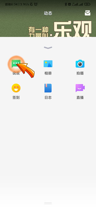 3、然后点击弹出窗口中的“说说”图标。