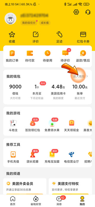 2、进入我的页面后,点击我的钱包右侧的“进入钱包”选项。