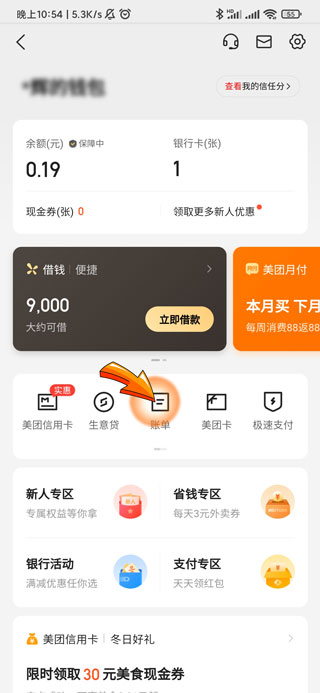 3、最后点击页面中部的“账单”选项即可查看退款账单信息。