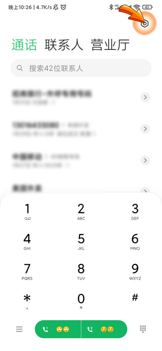 1、拉黑的电话号码查询首先需要打开手机的电话页面,点击页面右上角的“设置”齿轮图标。