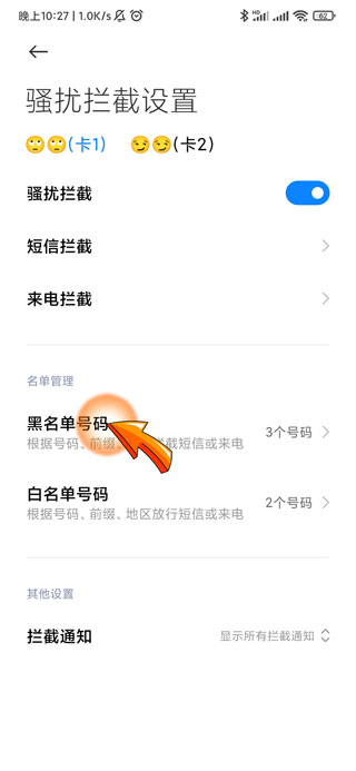 拉黑的电话号码查看需要打开手机的电话页面,点击右上角的“设置”齿轮图标,然后找到并点击“骚扰拦截”选项,最后点击名单管理下方的“黑名单号码”选项,即可查看电话号码拉黑名单。