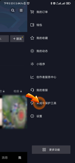 3、之后点击弹出窗口中的“未成年保护工具”选项。