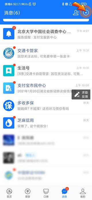 1、支付宝添加好友需要打开支付宝APP,点击页面下方的“消息”图标。