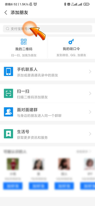 4、最后点击页面上方的“搜索栏”,输入对方的账号后进行添加。