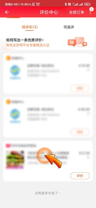 3、进入评价中心后,点击需要评价的“订单”。