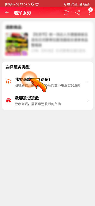 5、最后点击服务类型中的“我要退款”选项即可进行退款售后。