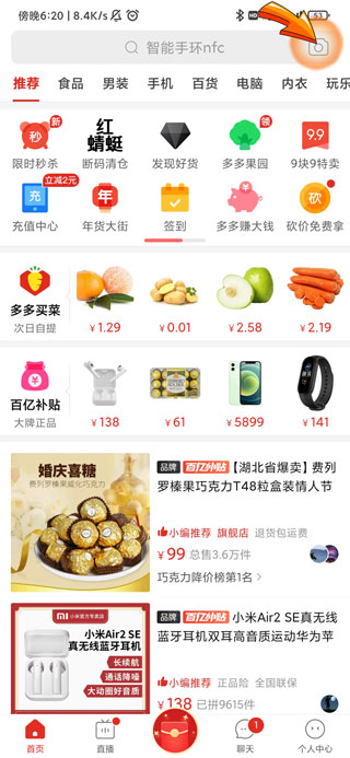 2、然后点击拼多多首页右上角的“相机”图标。