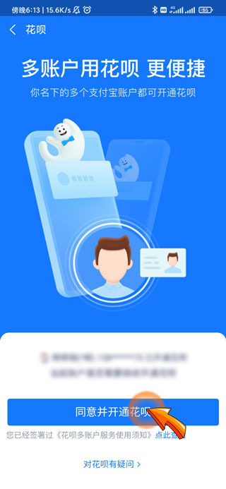3、最后点击花呗页面下方的“同意并开通花呗”选项即可开通花呗。