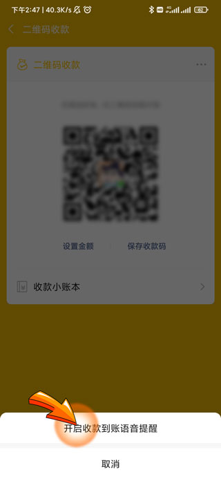 5、最后点击下方弹窗中的“开启收款到账语音提醒”选项即可。