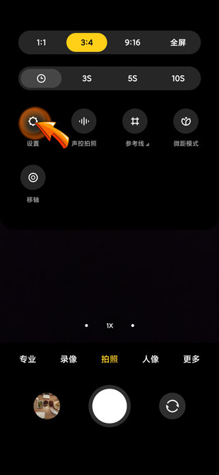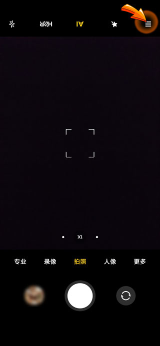2、进入相机页面后,点击右上角的“三横”符号。